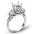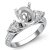 Gorgeous and elegant, this 18k Gold White, three-stone semi mount engagement ring has side pear diamonds intensifying the oval center stone in prong setting. The smaller