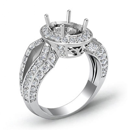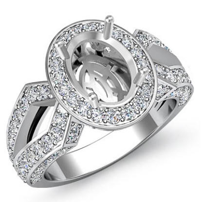Vintage Diamond Engagement Oval Ring Platinum Halo Setting Sem Mount (1.38Ct. tw.)