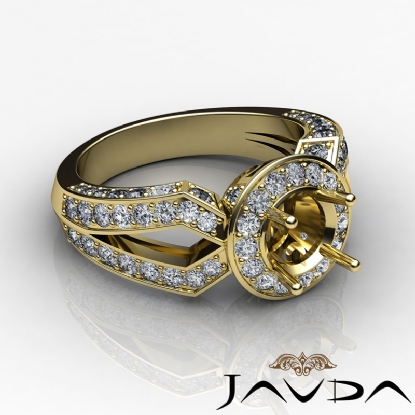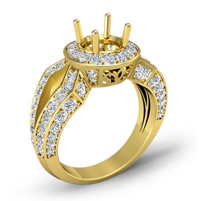 Diamond Engagement Halo Pave Setting Ring Round Semi Mount 18k Gold (1.42Ct. tw.)