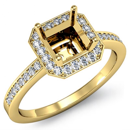 Diamond Engagement Ring Halo Setting 18k Gold Asscher Shape Semi Mount (1Ct. tw.)