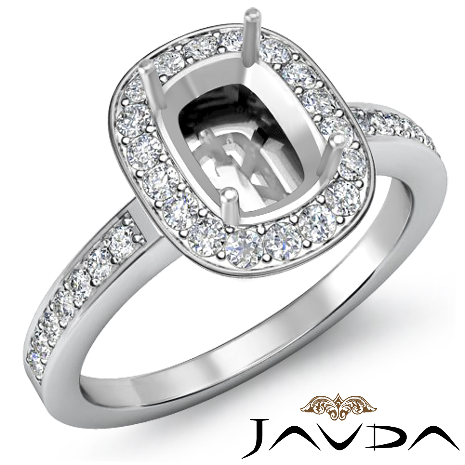 Diamond Engagement Cushion Shape Semi Mount Ring 18k W Gold Halo Setting (1Ct. tw.)