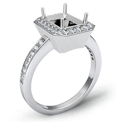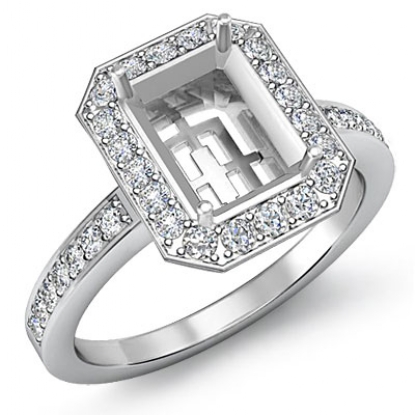 Diamond Engagement Semi Mount Halo Setting Platinum Emerald Shape Ring (1Ct. tw.)