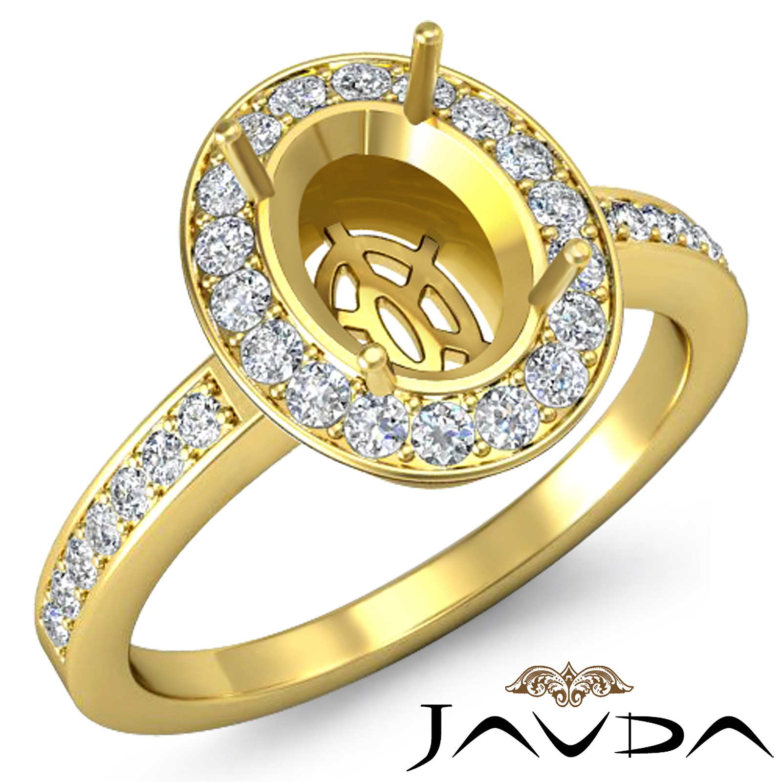Diamond Engagement Oval Ring 14k Gold Halo Pave Setting Semi Mount (1Ct. tw.)