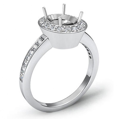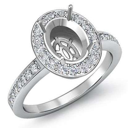 Diamond Engagement Oval Ring Platinum Halo Pave Setting Semi Mount (1Ct. tw.)