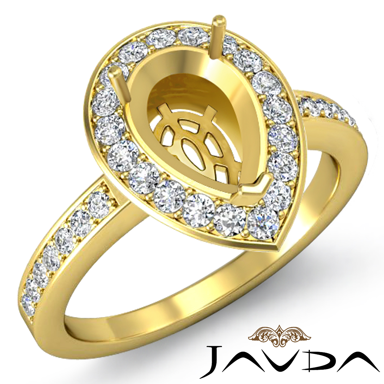 Diamond Engagement Halo Pave Setting Ring Pear Semi Mount 14k Gold (1Ct. tw.)