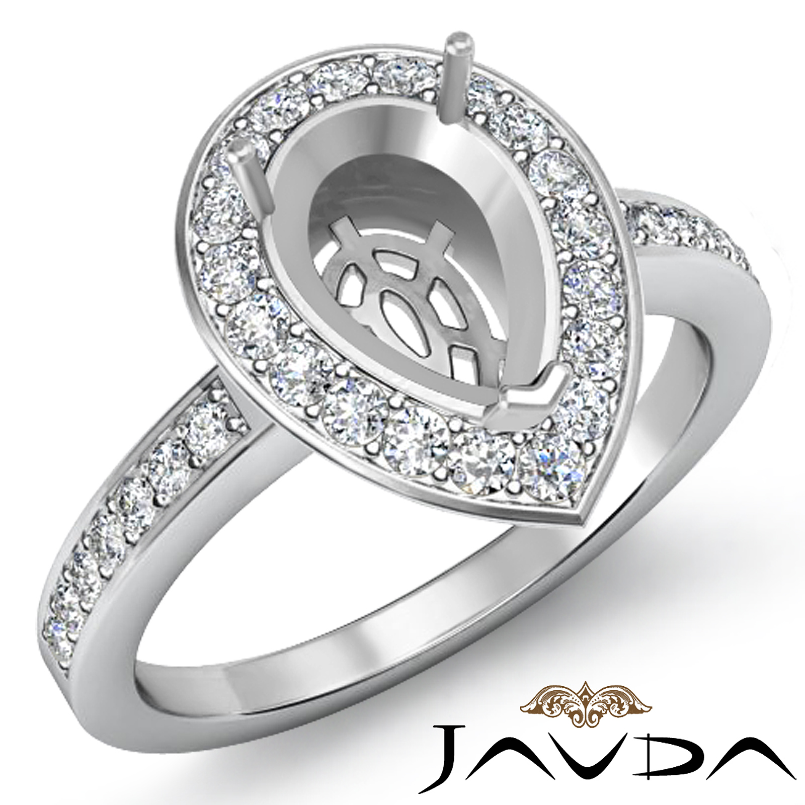 Diamond Engagement Halo Pave Setting Ring Pear Semi Mount 18k W Gold (1Ct. tw.)