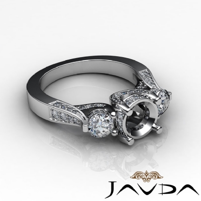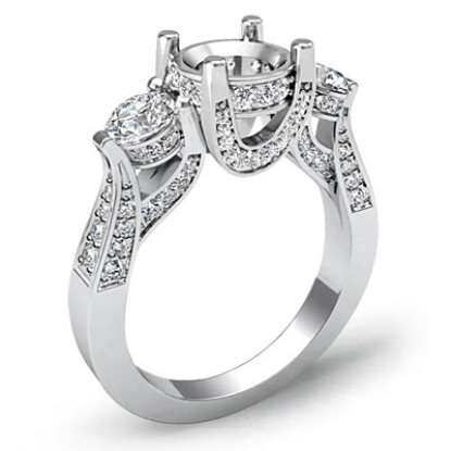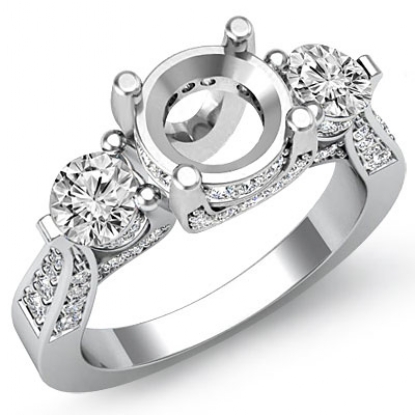 Three 3 Stone Diamond Engagement Ring Round Semi Mount 18k W Gold Setting (1.2Ct. tw.)