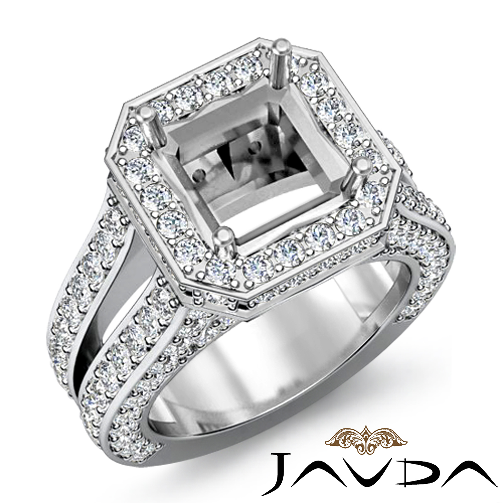 Diamond Engagement Ring Princess Semi Mount Halo Setting 18k W Gold (2.52Ct. tw.)