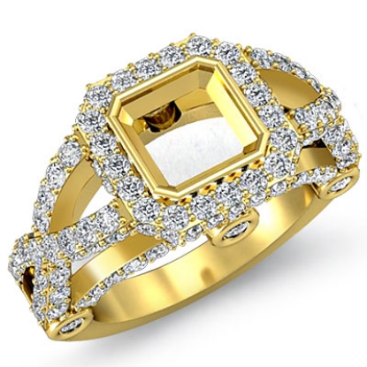 Diamond Engagement Ring Asscher Semi Mount 14k Gold Halo Setting (1.4Ct. tw.)