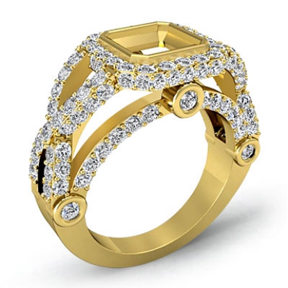 Eyes will be fixated on this one! This asscher semi mount diamond engagement ring is made in 14k Gold Yellow. It showcases round pave diamonds in halo & along the shank. (1.4Ct. tw.)