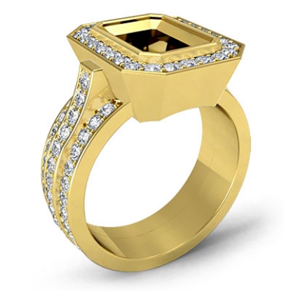 Undeniably striking, this emerald semi mount diamond engagement ring is made in 14k Gold Yellow. It showcases round diamonds in halo & along the shank. (1.65Ct. tw.)