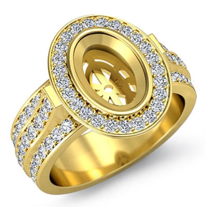 Diamond Engagement Halo Pave Setting Ring Oval Semi Mount 18k Gold (1.65Ct. tw.)