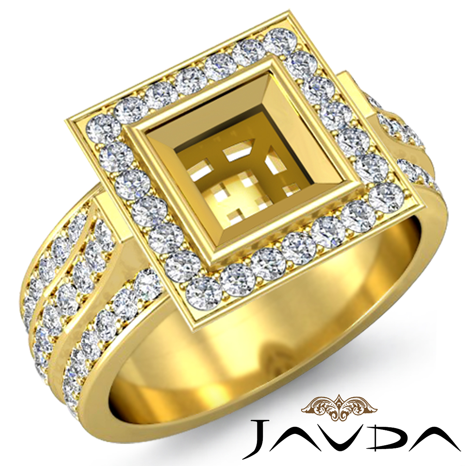 Diamond Engagement Ring Halo Setting 18k Gold Princess Semi Mount (1.65Ct. tw.)