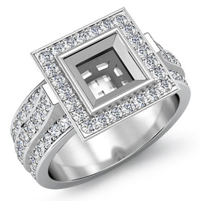 Diamond Engagement Ring Halo Setting Platinum Princess Semi Mount (1.65Ct. tw.)