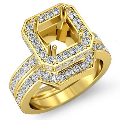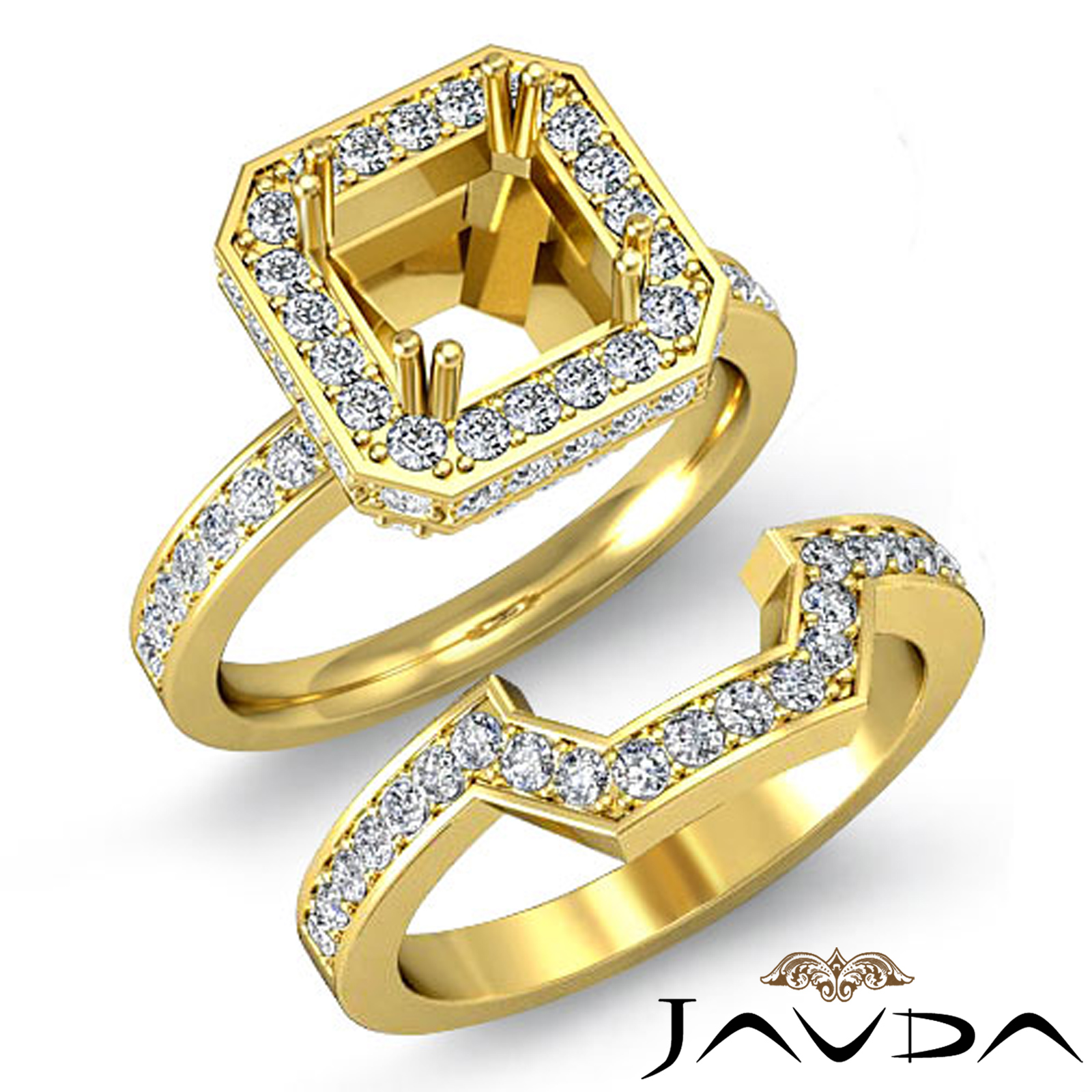 Diamond Engagement Halo Ring Princess Bridal Sets 18k Gold Semi Mount (1.6Ct. tw.)