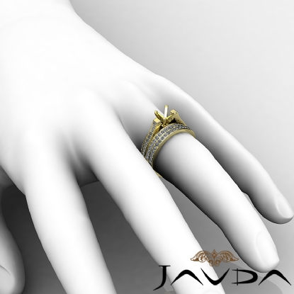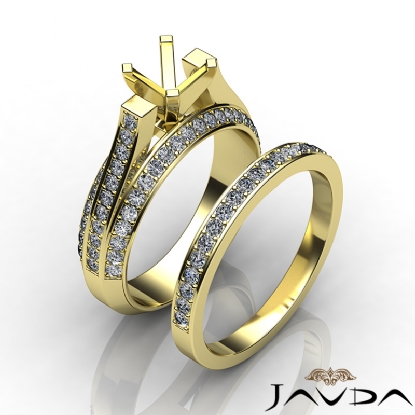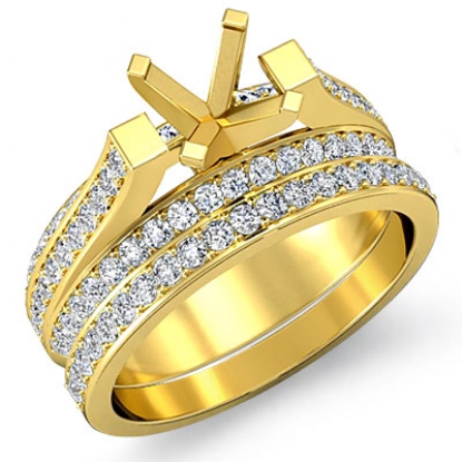 Outstanding is the word for this 14k Gold Yellow semi mount engagement ring and matching band. This bridal set features of round pave set diamonds along the spectacular shank, making it perfect for the occasion. (2.1Ct. tw.)