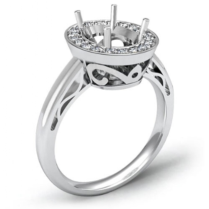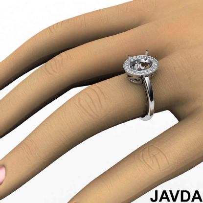 Halo Setting Diamond Engagement Ring 18k W Gold Oval Shape Semi Mount (0.36Ct. tw.)