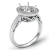 This strikingly sophisticated 18k Gold White engagement ring showcases an oval semi mount. It features round pave diamonds in halo & along the shank. (0.36Ct. tw.)