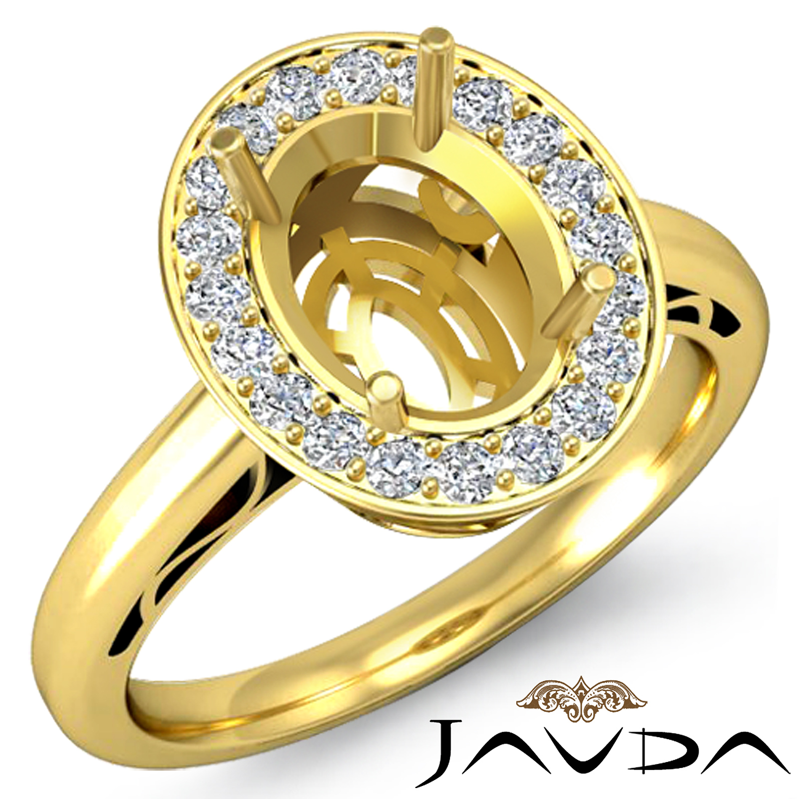 Halo Setting Diamond Engagement Ring 18k Gold Oval Shape Semi Mount (0.36Ct. tw.)