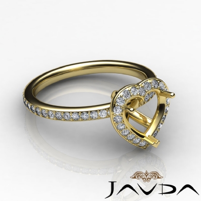This strikingly sophisticated 14k Gold Yellow engagement ring showcases a heart semi mount. It showcases pave set round diamonds in halo & along the shank. (1Ct. tw.)