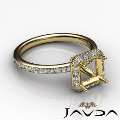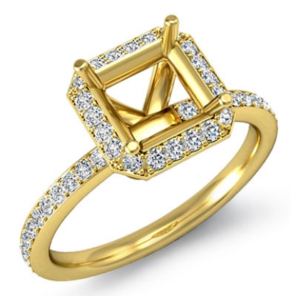An elegant statement, this asscher diamond semi mount engagement ring captures all the romance, with pave set round diamonds in halo & on the shank. This ring is made in glorious 14k Gold Yellow (1Ct. tw.)