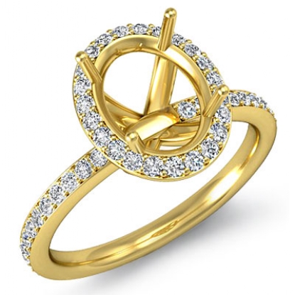 Get ready for glamour, with this striking diamond engagement ring made in 18k Gold Yellow. The oval semi mount ring displays pave set round diamonds in halo & along the shank. (1Ct. tw.)