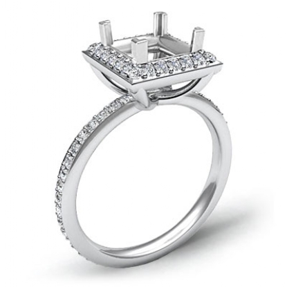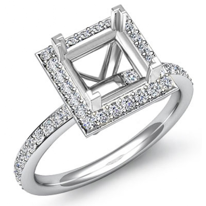 Diamond Engagement Ring Princess Cut Semi Mount 18k W Gold Halo Setting (1Ct. tw.)
