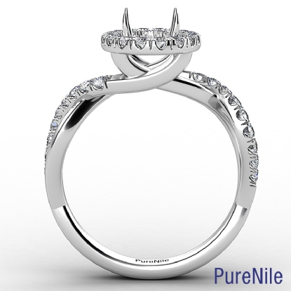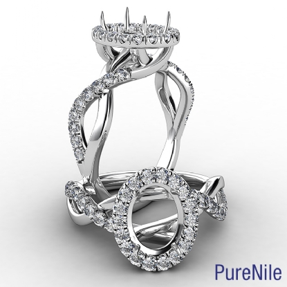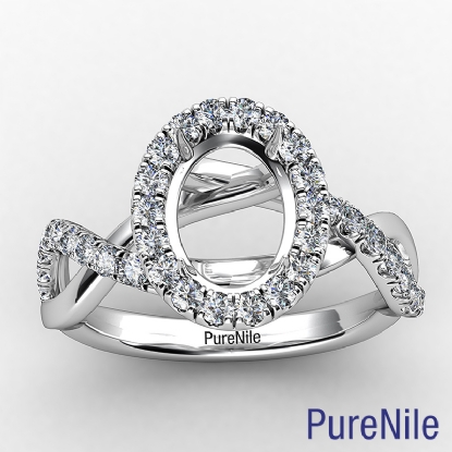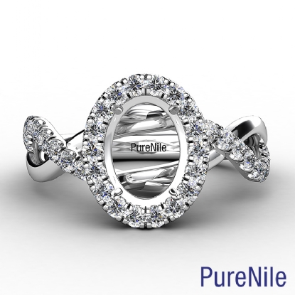 Criss Cross Shank Halo Oval Semi Mount Diamond Engagement Ring Platinum (0.5Ct. tw.)