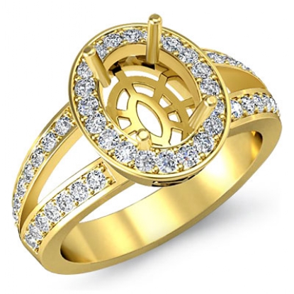 Diamond Engagement Halo Pave Ring Oval Semi Mount 18k Gold (0.55Ct. tw.)