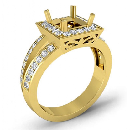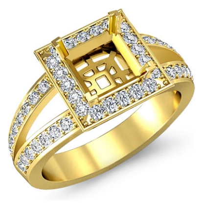 Diamond Engagement Ring Halo Setting 18k Gold Princess Semi Mount (0.55Ct. tw.)