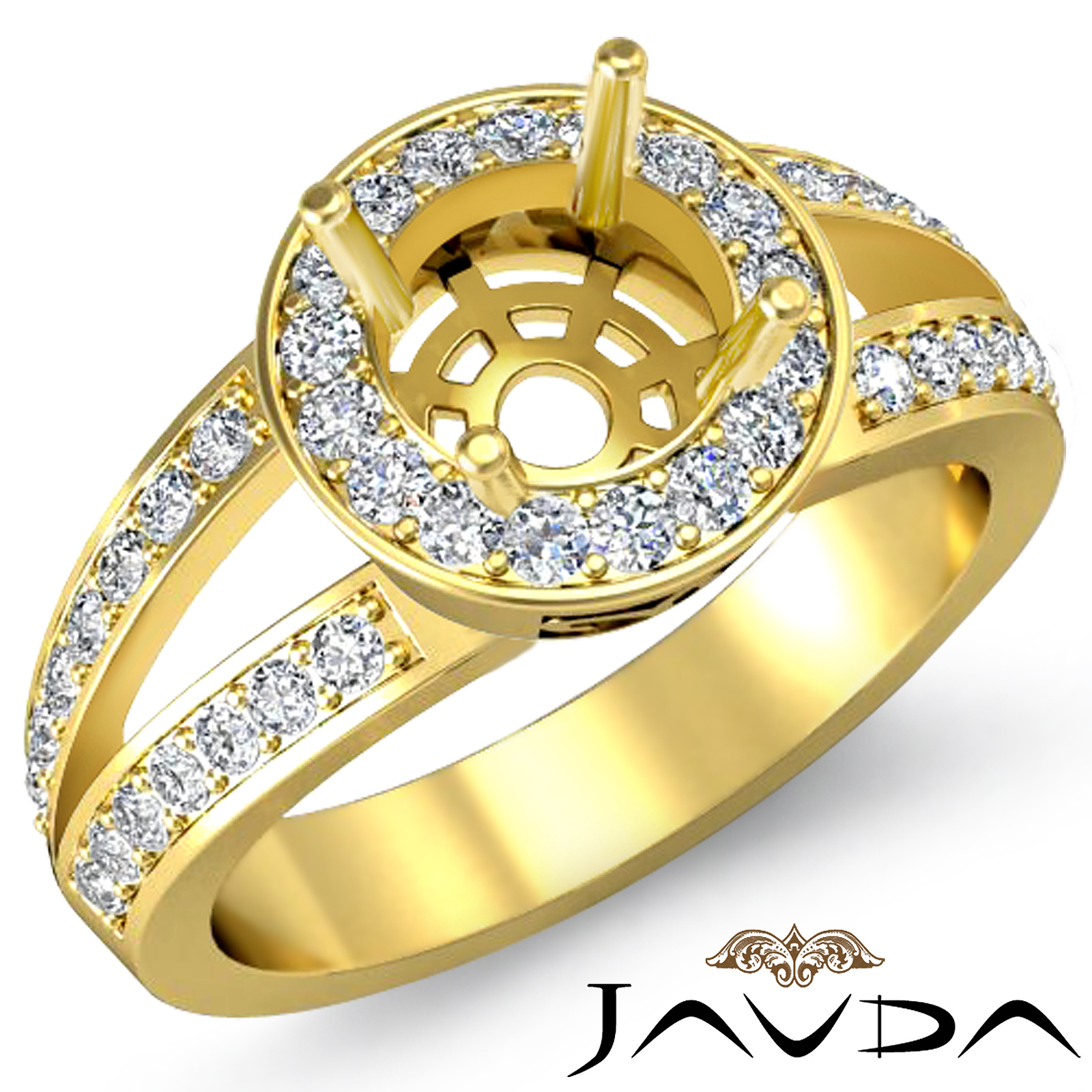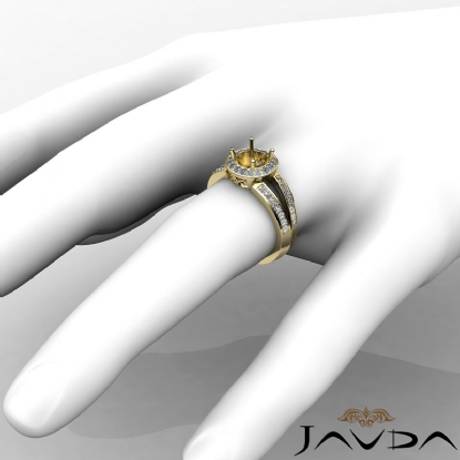 Lavishly romantic, this diamond engagement ring is made in glorious 14k Gold Yellow. This round semi mount ring features round diamonds in pave setting on the halo & shank. (0.55Ct. tw.)