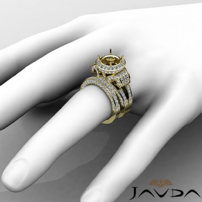 Diamond Engagement Ring Round Halo Pave Setting Bridal Set 18k Gold (3.7Ct. tw.)