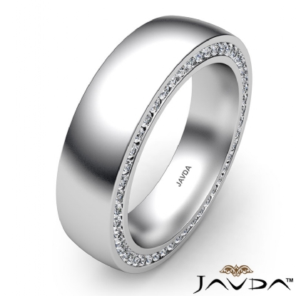 Classic diamond eternity men's wedding band made from 18k Gold White. This dome wedding band features round diamonds in a channel setting on both side of ring. Available in 14k & 18k white gold, yellow gold and rose gold & platinum 950. (1.1Ct. tw.)