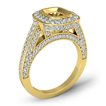 Pave Setting Diamond Engagement Cushion Semi Mount Ring 14k Gold (1.65Ct. tw.)