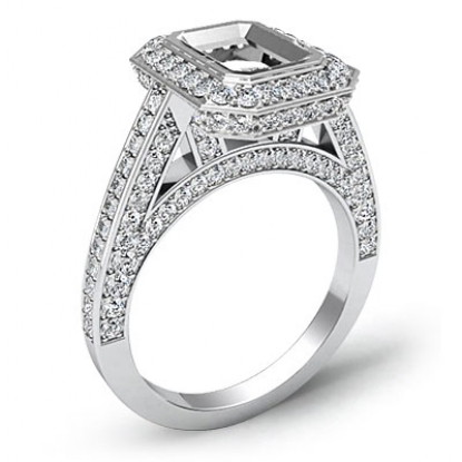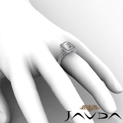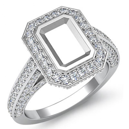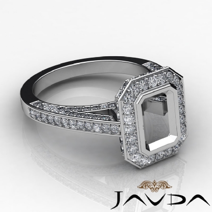 Halo Setting Diamond Engagement Emerald Semi Mount Ring 18k W Gold (1.65Ct. tw.)