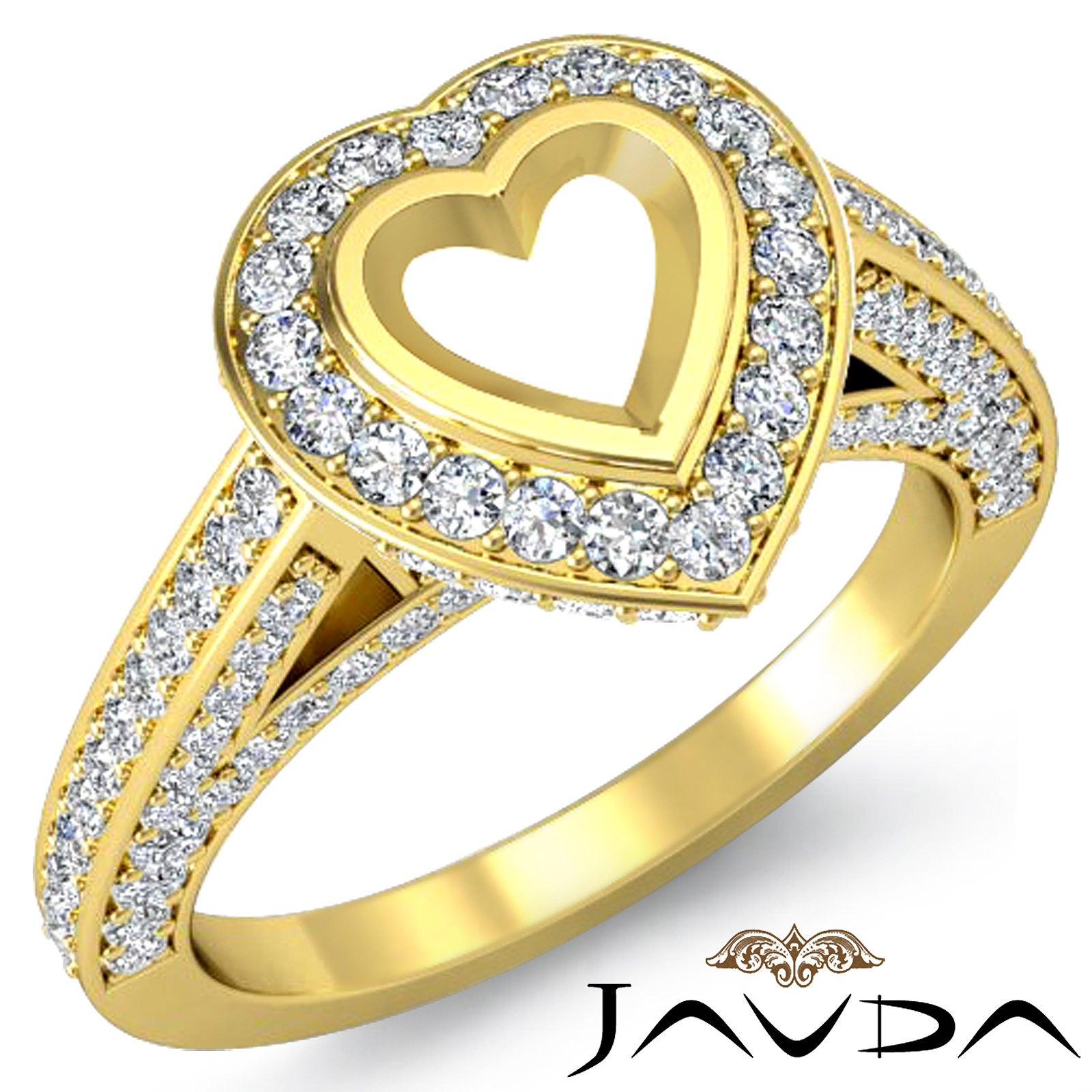 Halo Pave Setting Diamond Engagement Heart Semi Mount Ring 18k Gold (1.65Ct. tw.)