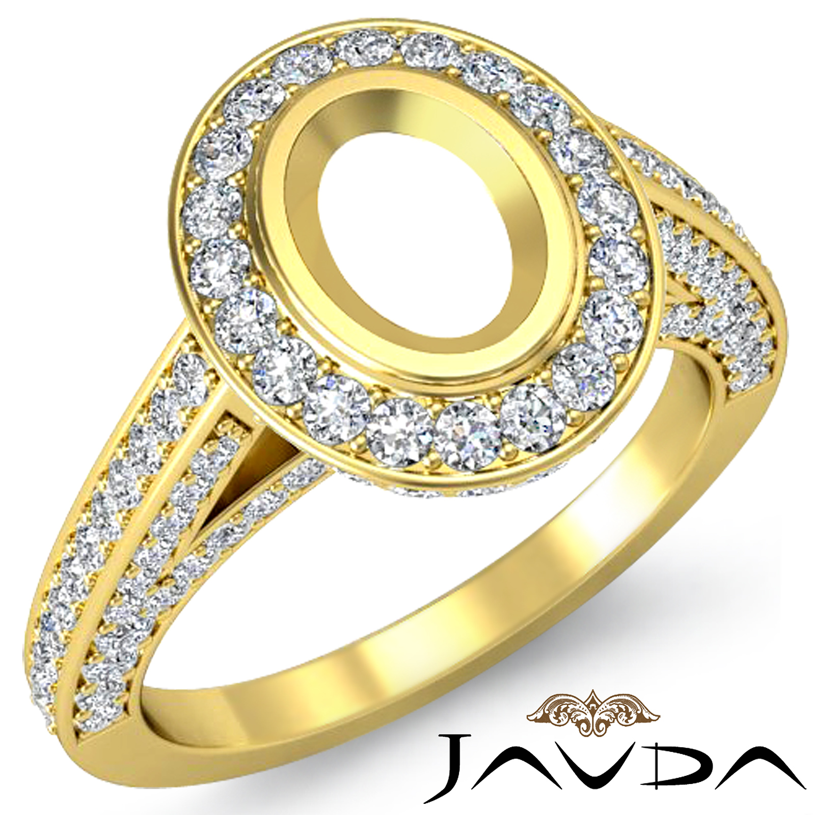 Halo Pave Setting Diamond Engagement Oval Semi Mount Ring 14k Gold (1.65Ct. tw.)