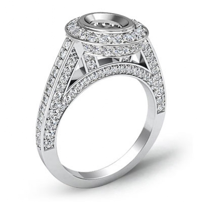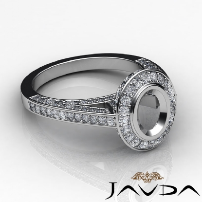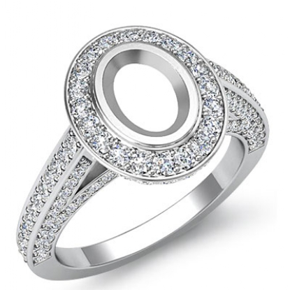 Halo Pave Setting Diamond Engagement Oval Semi Mount Ring 18k W Gold (1.65Ct. tw.)