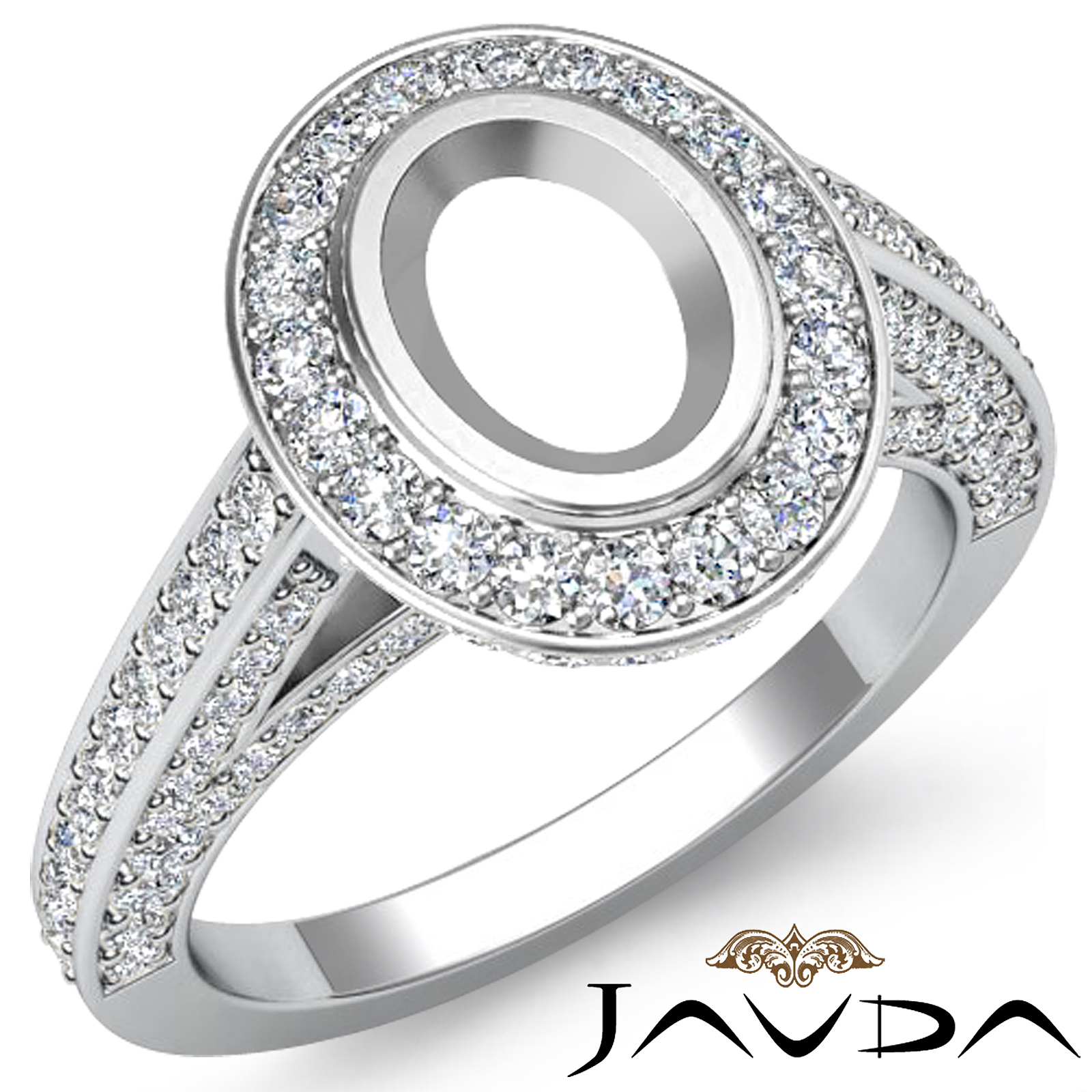Halo Pave Setting Diamond Engagement Oval Semi Mount Ring Platinum (1.65Ct. tw.)