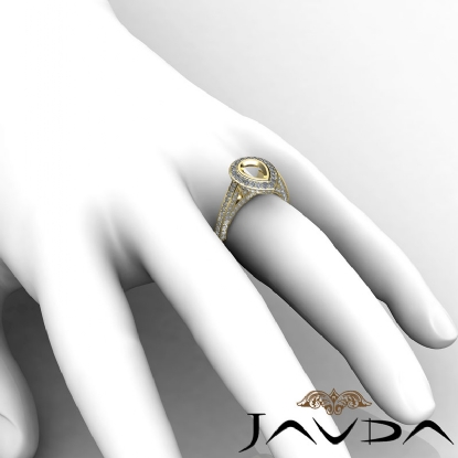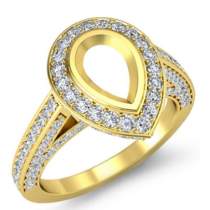 Halo Pave Setting Diamond Engagement Pear Semi Mount Ring 18k Gold (1.65Ct. tw.)