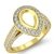 Elegant in its simplicity, this classic yet striking diamond engagement ring with a pear semi mount is made in 18k Gold Yellow. It showcases round diamonds in halo & along the shank. (1.65Ct. tw.)