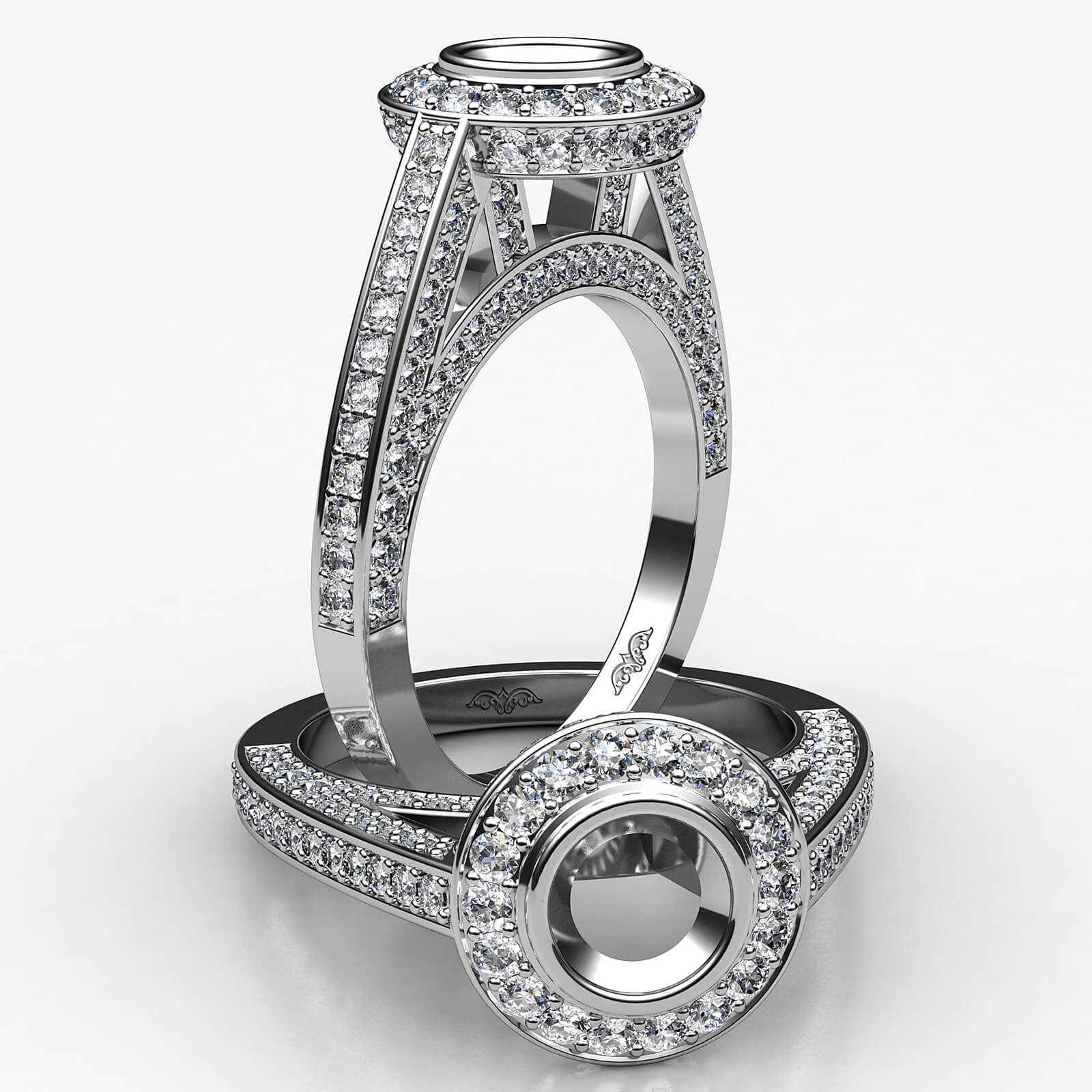Halo Pave Setting Diamond Engagement Round Semi Mount Ring Platinum (1.65Ct. tw.)