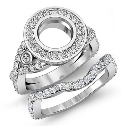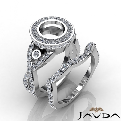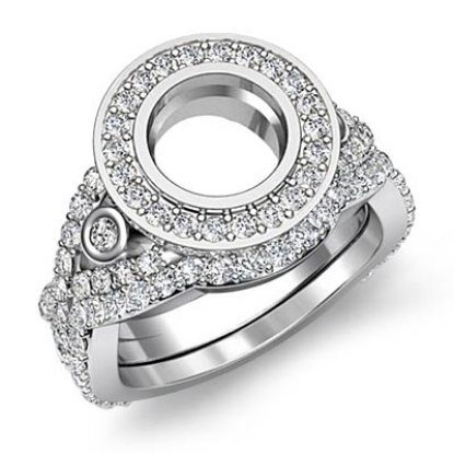 Round Diamond Engagement Halo Pave Setting Ring Bridal Set 18k W Gold (2.1Ct. tw.)