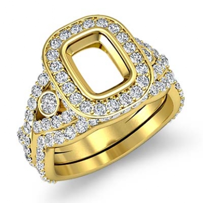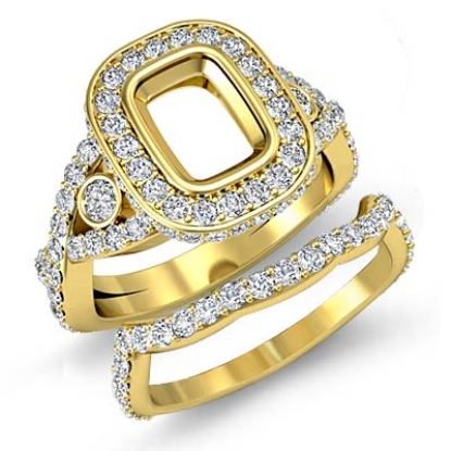Cushion Diamond Engagement Pave Ring Bridal Sets 18k Gold Setting (2.1Ct. tw.)