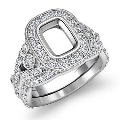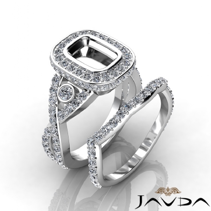Cushion Diamond Engagement Pave Ring Bridal Sets Platinum Setting (2.1Ct. tw.)