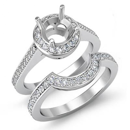 Diamond Engagement Pave Ring Round Bridal Sets 18k W Gold Semi Mount (0.87Ct. tw.)