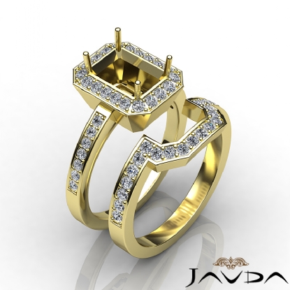 Diamond Engagement Halo Ring Emerald Bridal Sets 14k Gold Semi Mount (1.4Ct. tw.)