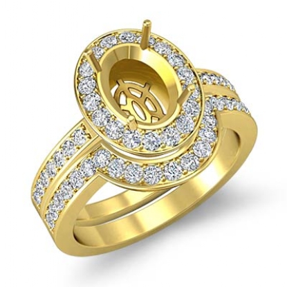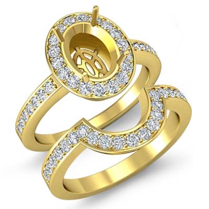 Diamond Engagement Pave Ring Oval Bridal Sets 18k Gold Setting (1.4Ct. tw.)