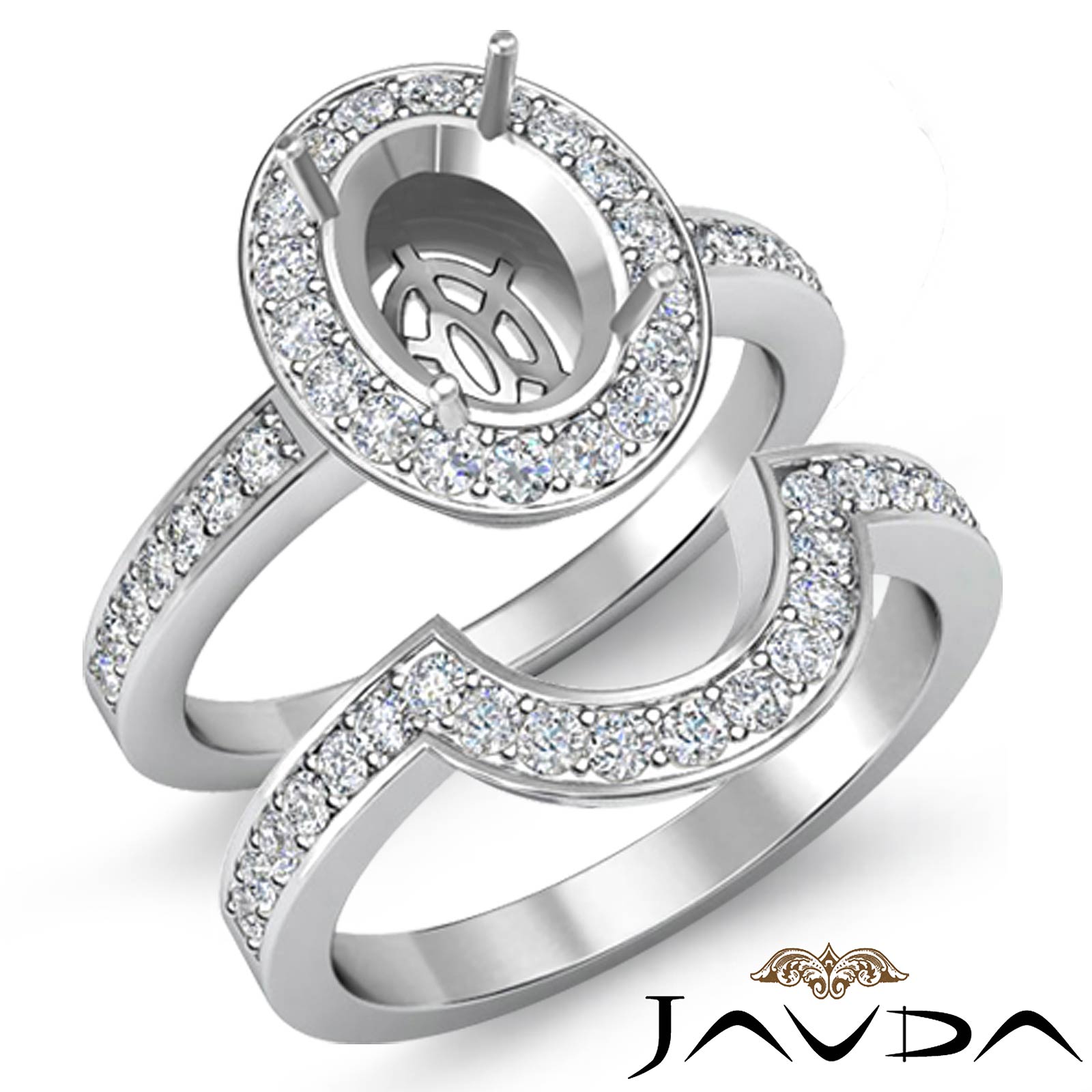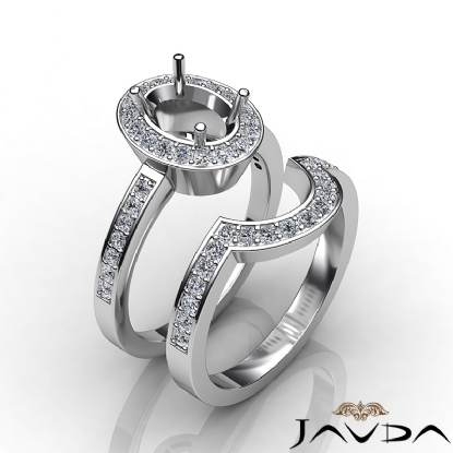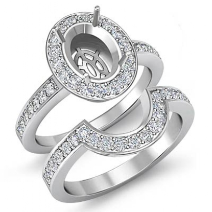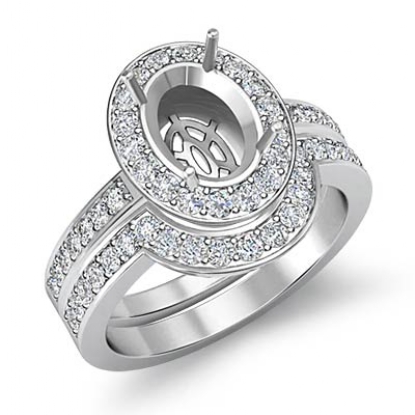 Diamond Engagement Pave Ring Oval Bridal Sets Platinum Setting (1.4Ct. tw.)