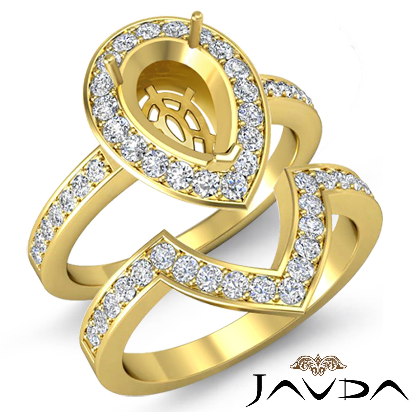 Diamond Halo Ring Pear Bridal Sets 14k Gold Semi Mount (1.4Ct. tw.)